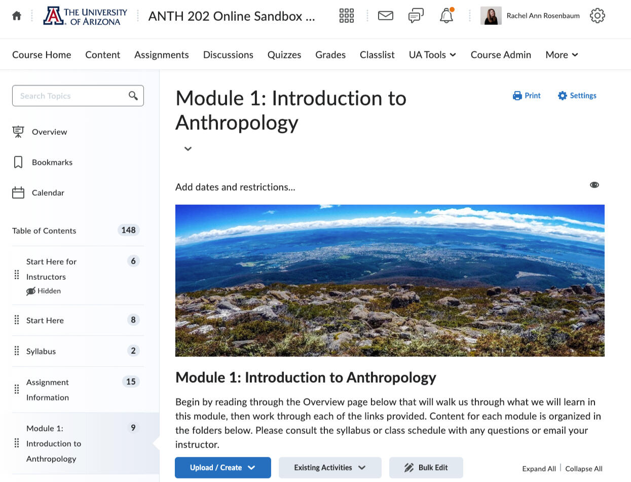 I was a course designer, instructor, and digital education consultant for online courses in anthropology for the University of Arizona's School of Anthropology. I conducted program evaluation and spearheaded the process of online course approvals within the college of Social and Behavioral Sciences while evaluating challenges to optimize future approvals through designing educational resources and course templates. I set the department up for success in online education by creating a new web template and extensive resource guides for instructors to make courses consistent, engaging, and in line with pedagogical best practices.